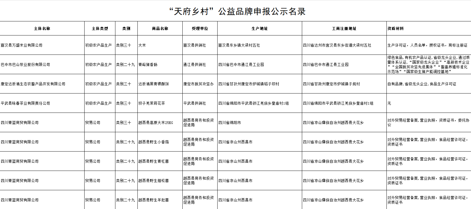 “天府鄉(xiāng)村”第90批公示企業(yè)名錄